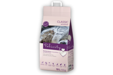 Felicity CLASSIC pure ist eine klumpenbildende und sehr feine Katzenstreu aus natürlicher Tonerde (Hormit). Felicity CLASSIC pure nimmt hohe Mengen Flüssigkeit auf und bindet Gerüche zuverlässig. Felicity CLASSIC sensitive ist parfümfrei und somit besonders gut für sensible Katzennasen und Kitten geeignet.