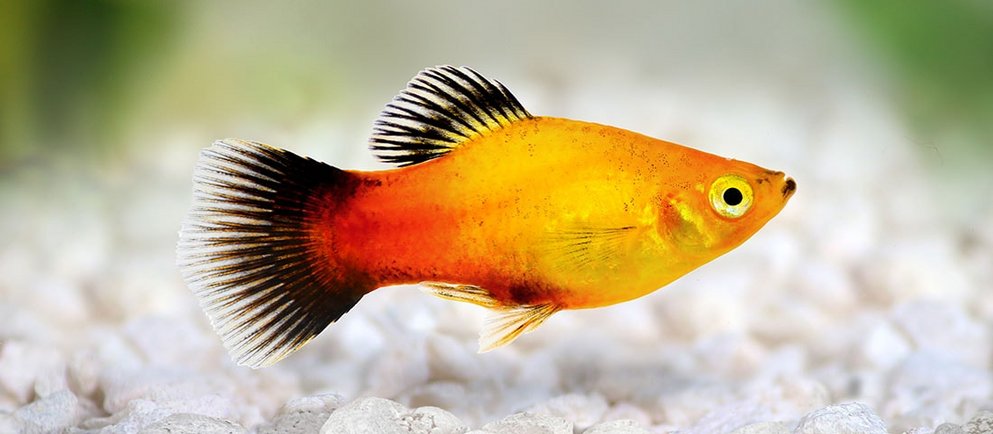 - Wagtail-Platys mit ihrer auffällig dunklen Schwanzflosse