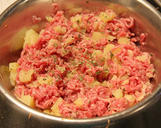Wie muss das Fleisch artgerecht zubereitet werden, damit der Hund es optimal fressen kann? Sollte es in größere Stücke geschnitten oder gewolft werden? Fakt ist, beide Zubereitungsvarianten des Futters haben ihre Vorteile. So lassen sich unter gewolftes Fleisch leichter andere Bestandteile des Barfens (wie z. B. Gemüse) mischen. Zudem kann gewolftes Futter leichter vom Hund verdaut werden und er kann das Fleisch besser aus dem Napf fressen. Weil er mehr zerkleinern muss, frisst der Hund bei großen Stücken deutlich langsamer. So kann das Fressen auch zur ausgedehnten Beschäftigung werden. Gewürfeltes Fleisch ist länger haltbar.